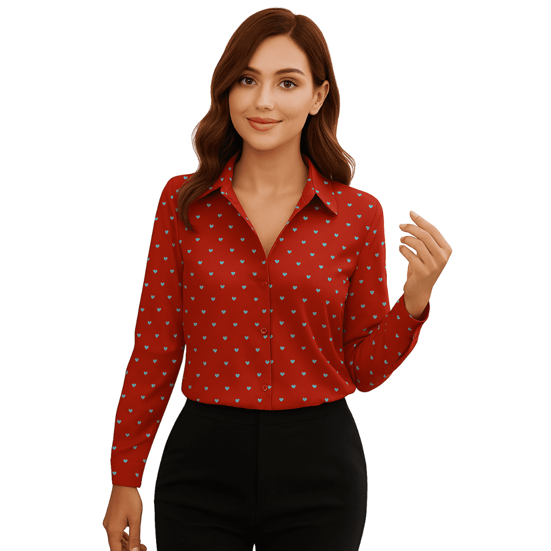 Molde digital descargable de blusa camisera de mujer con cuello clásico, manga larga y abotonadura frontal. Ideal para confeccionar en telas ligeras y fluidas.