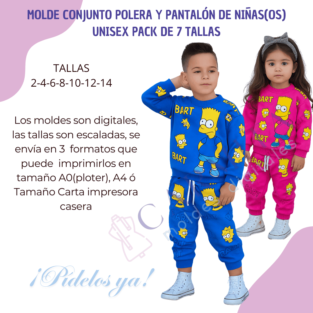 MOLDE DIGITAL CONJUNTO DEPORTIVO DE NIÑOS (PANTALÓN Y POLERA)