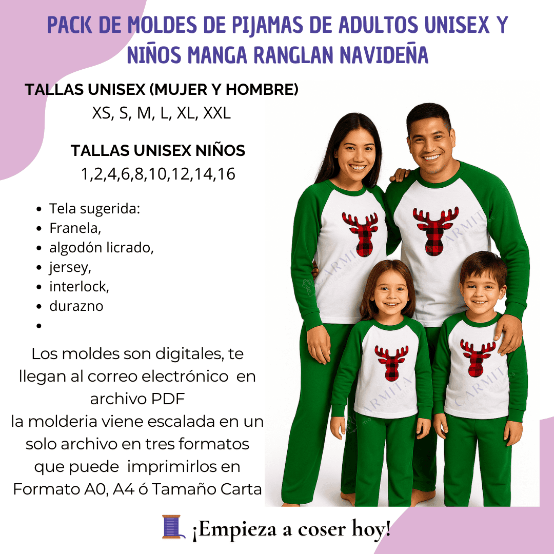 | Molde digital | CONJUNTO PIJAMA FAMILIAR NAVIDEÑO (PADRES E HIJOS) en PDF. |