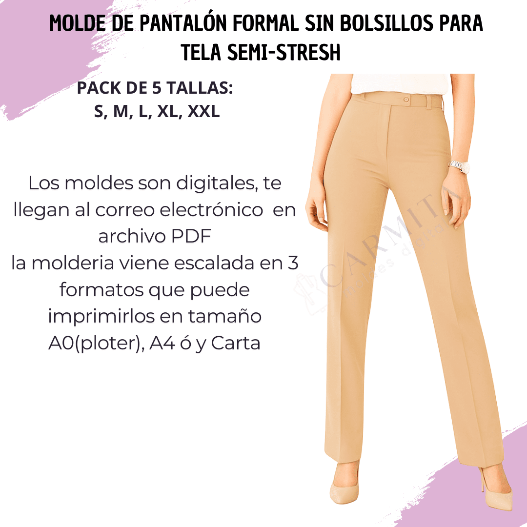 | Molde digital | MOLDE DIGITAL PANTALÓN FORMAL SIN BOLSILLOS CON PRETINA, PDF |